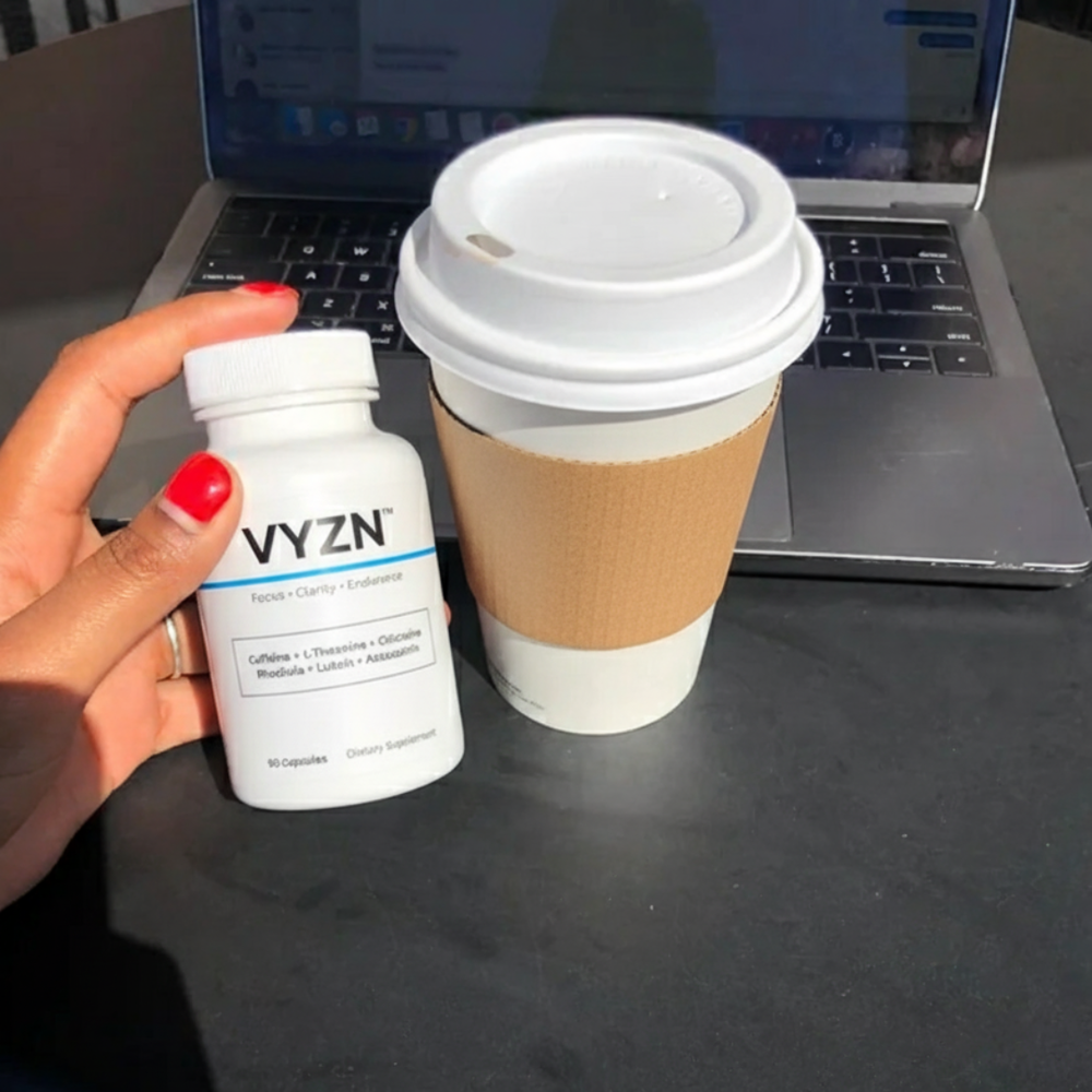 Most users find it smooth and non-overstimulating, but if you are sensitive to caffeine, it’s best to take VYZN™ in the morning or early afternoon. Avoid taking it close to bedtime to prevent possible sleep disruption.